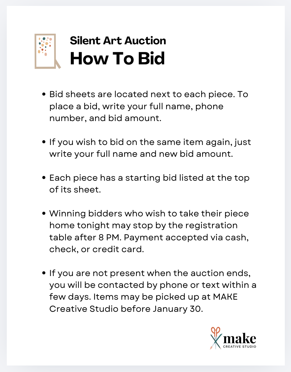Print-ready bid sheets and instructions designed for clarity, usability, and smooth live-event execution.
